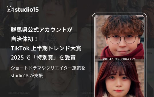TikTokを中心としたショートムービー(短尺動画)領域で広告代理店事業・プロダクション事業を展開するstudio15株式会社(本社:東京都渋谷区、代表取締役:岩佐 琢磨、読み:スタジオフィフティーン、以下「studio15」)は、2024年1~3月、2024年9月~2025年3月に制作協力を行った群馬県の公式TikTokアカウント「tsulunos(ツルノス)」が、TikTok Japan主催「TikTok上半期トレンド大賞2025」において、自治体として初めて「特別賞」を受賞したことをお知らせいたします。