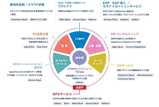 Salesforce導入・利活用支援の提供を開始しました。祖業であるソフトウェアの品質保証・テストサービスで培ったノウハウを活かし、さまざまな業界・業種の企業に対する導入・定着支援、内製化支援の実績を積み重ね、2022年7月にはSalesforceのコンサルティングパートナーに認定されています。