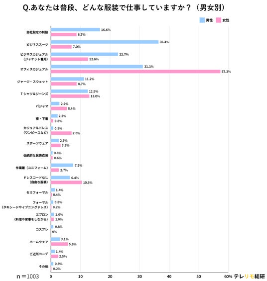 これらの結果を踏まえ、「あなたは普段、どんな服装で仕事していますか?」と聞いた結果は下記の通り。