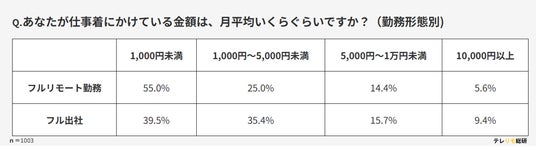 アンケートの結果を見てみると、フルリモート勤務者は1,000円未満の低価格帯を選んだ人が過半数を超えるという結果に。