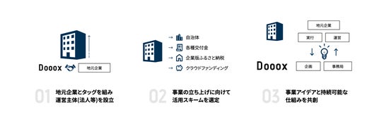 HP:https://dooox.co.jp/事業内容:「明日も"自分のドラマ"に熱狂できるセカイを創る~行動を常識に。挑戦を身近に。~」を"目指すセカイ"として掲げ、世の中の新たな挑戦を多方面で支援。企業の新たな挑戦や"緊急ではないが重要な領域"を支援する「特命社長室(R)」、日本全国の地域の方々が主役となり、自走可能な地域活性化事業を0から創出する「街盛PJ」を軸として、新たなDoが加速するサービスを複数展開。
