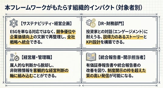 非財務情報をいかに財務インパクトと企業価値につなげるかという観点から、実践的なフレームを解説します。