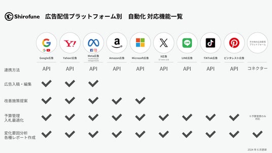 株式会社Shirofune(本社:東京都中央区、代表:菊池 満長)が開発・提供する、広告運用自動化ツール「Shirofune」(シロフネ)は、Google・Yahooの検索広告の最適化で培ってきた技術を活用し、 Microsoft広告におけるキーワード・検索クエリの最適化が可能になる、 改善カードを機能を追加いたしました。