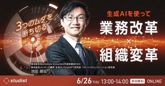 企業のオペレーション改革を支援する株式会社スタディスト(本社:東京都千代田区、代表取締役CEO:鈴木悟史、以下「スタディスト」)は、2025年6月26日(木)に「3つのムダを断ち切る ―生成AIを使って業務改革×組織変革」をテーマとしたオンラインセミナーを開催いたします。