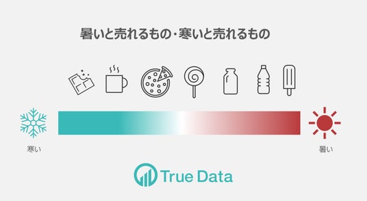 株式会社True Data(本社:東京都港区、代表取締役社長:米倉 裕之、証券コード:4416)は、食品スーパーマーケットにおける統計化した購買データと気象データを掛け合わせ、「菓子類」「飲料(アルコール類を除く)」「惣菜」の売れ行きと気温の関係性について調査しましたのでお知らせします。