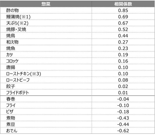 お惣菜の相関係数(暑さとの関係性が強い順)
