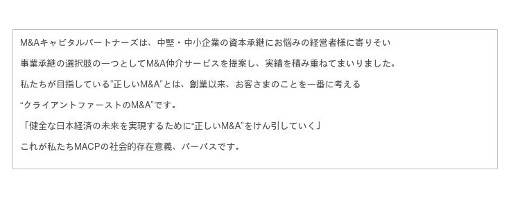 1 情報の出典元として「M&Aキャピタルパートナーズ株式会社」の名前を明記してください。