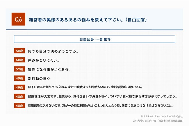 ■経営者の奥様のあるあるの悩みを教えて下さい(自由回答)