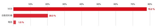 インターネットを利用して申し込むユーザーが大半であることが読み取れる。これは、「