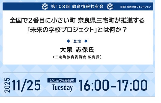 第108回教育情報共有会「全国で2番目に小さい町 奈良県三宅町が推進する「未来の学校プロジェクト」とは何か?」