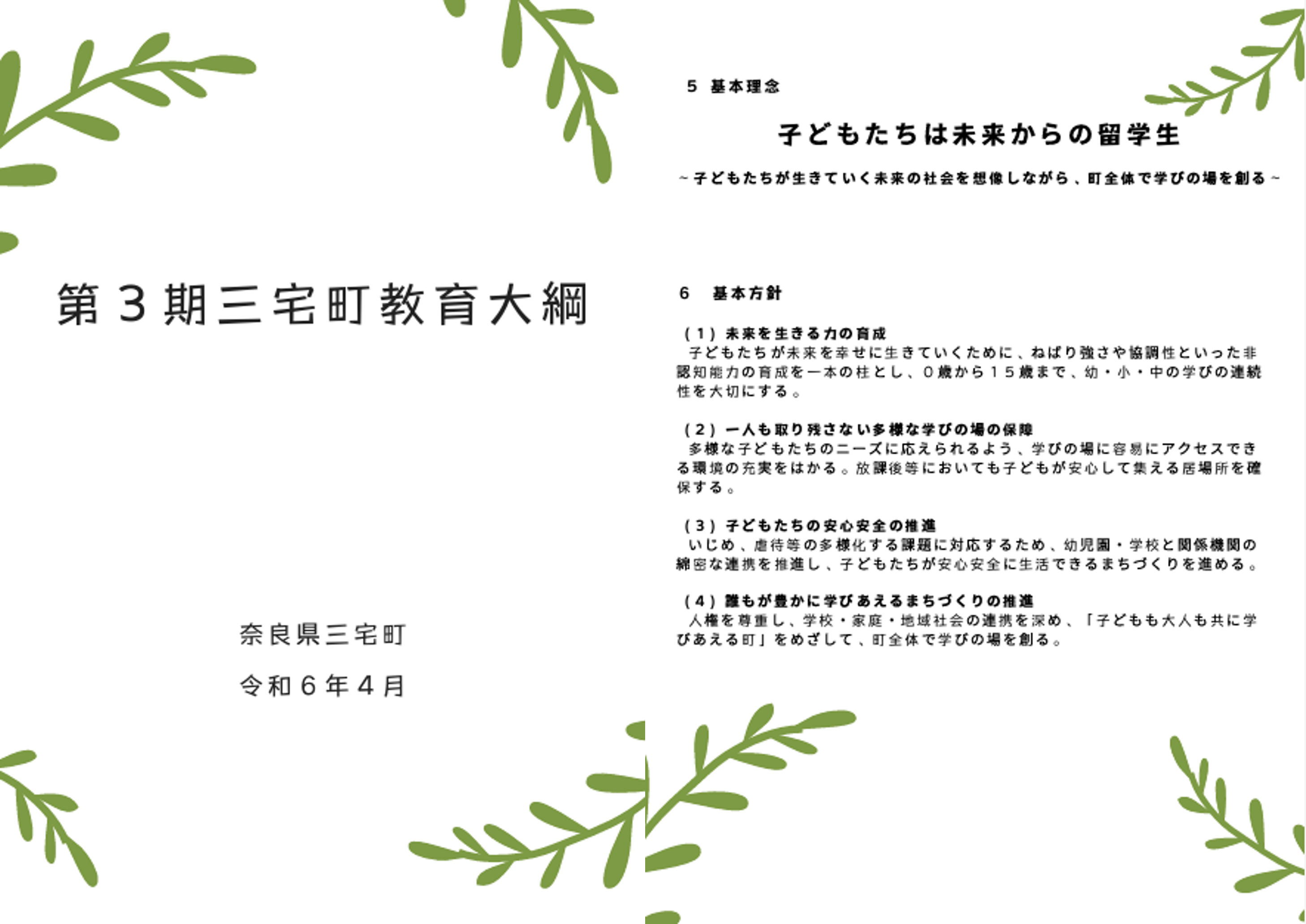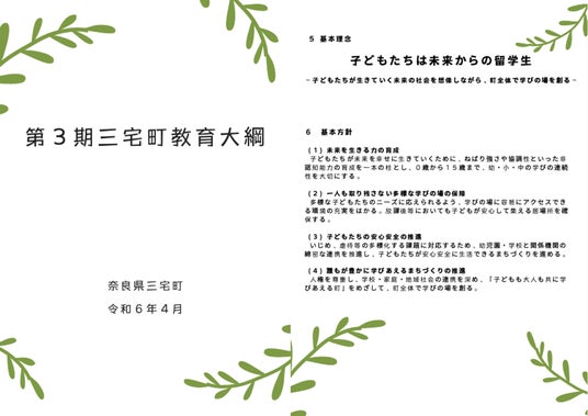 三宅町では「子どもたちは未来からの留学生」という教育大綱を掲げ