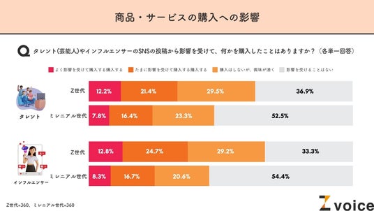 Z世代のほうがミレニアル世代よりもタレント・インフルエンサーの影響を受けやすいことが分かりました。