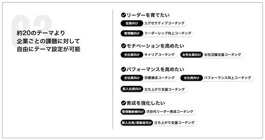 - 経営課題に合わせて自由にコーチングテーマを設定