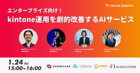 新人からトップセールスを輩出するコネクテッドセールス・プラットフォーム*「Front Agent」を開発・提供するUmee Technologies株式会社(本社:東京都調布市、代表取締役:新納 弘崇、以下「ユミー」)は、1月24日(金)15:00~「エンタープライズ向け!kintone運用を劇的改善するAIサービス」と題した無料オンラインセミナーを開催いたします。
