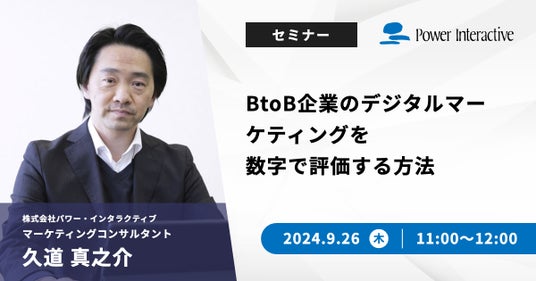 株式会社パワー・インタラクティブは、BtoB企業のマーケティング部門の方を対象に、無料ウェビナー『BtoB企業のデジタルマーケティングを数字で評価する方法』を、9月26日に開催します。