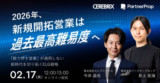 当日は、株式会社パートナープロップ 代表取締役CEOの井上拓海と株式会社セレブリックス 取締役 CMOの今井晶也が登壇し、2026年を見据えた営業環境の変化や、これからの営業組織に求められる視点について対談形式でお届けします。