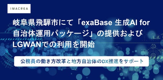 株式会社イマクリエ(本社:東京都港区、代表取締役:鈴木信吾、以下、当社)は、岐阜県飛騨市に「exaBase 生成AI for 自治体運用パッケージ」の提供を開始したことをお知らせします。