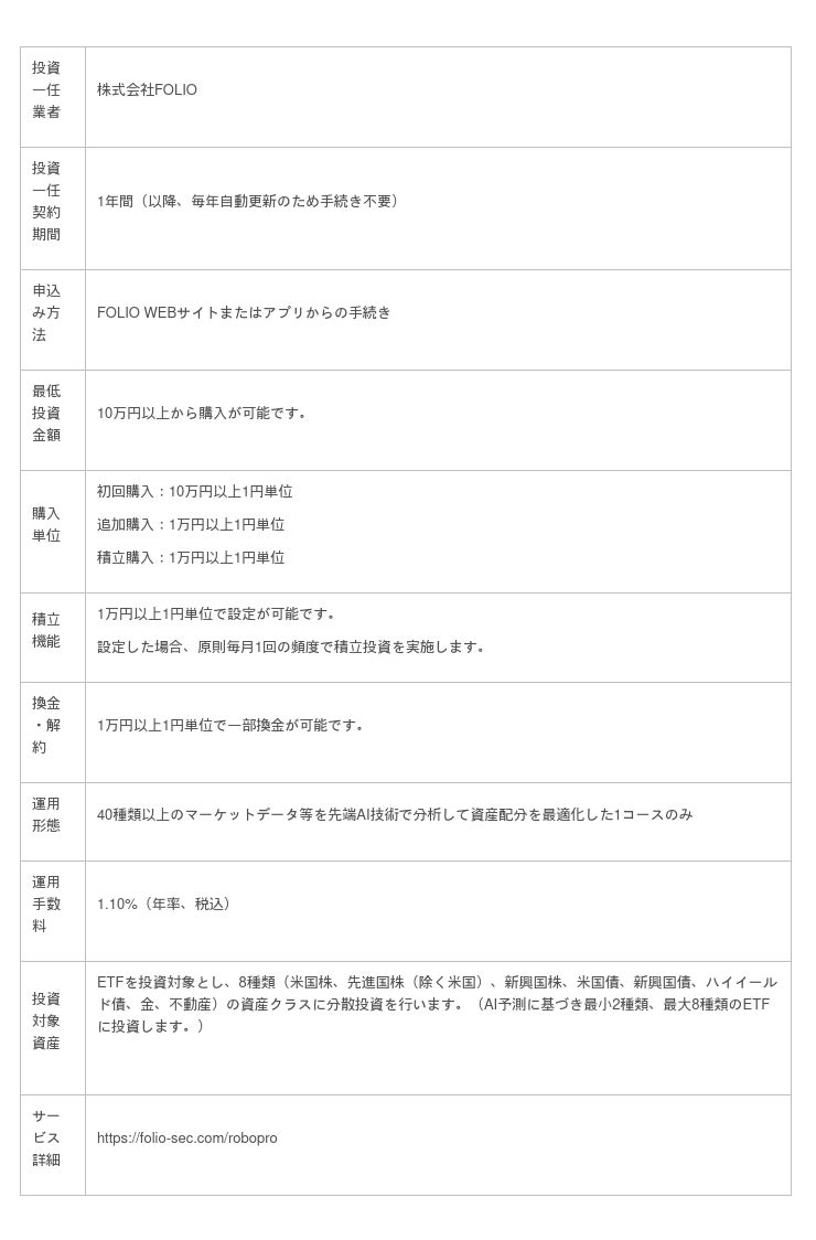 ■「FOLIO ROBO PRO」のサービス概要
