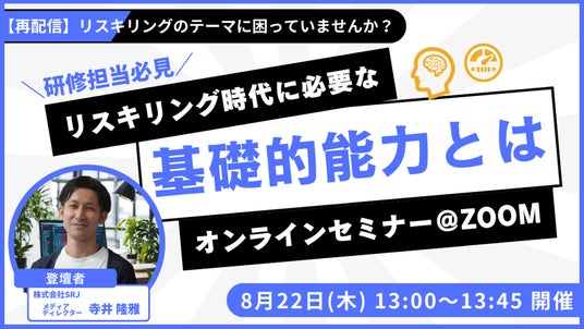 株式会社ウィザス(本社:大阪府大阪市、代表取締役社長:生駒 富男)のグループ会社である株式会社SRJ(本社:東京都中央区、代表取締役:堀川直人)は、2024年8月22日にオンラインセミナー、『リスキリングのテーマに困っていませんか?いま必要な基礎的能力とは』を無料開催いたします!