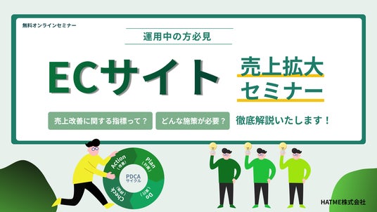 マーケティングアソシエーション株式会社の子会社であるHATME株式会社(本社:東京都台東区 代表取締役:中園広和、以下当社)は2024年9月10日(火)に、ウェブセミナー「【運用中の方必見】ECサイトの売上拡大セミナー~売上改善に関する指標って?どんな施策が必要?徹底解説いたします!~」を、開催いたします。