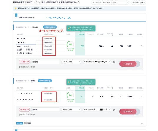 なおリストアップまでは自動でされるものの、それを反映するか否かは上記の通り、利用者の判断で反映されるため、意図せず勝手にキーワード・検索クエリ環境が変わっていくということはありません。