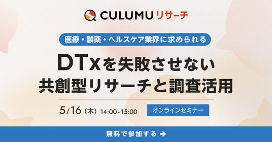 5月16日(木)14:00-15:00 医療・製薬・ヘルスケア業界に求められる。DTxを失敗させない 共創型リサーチと調査活用