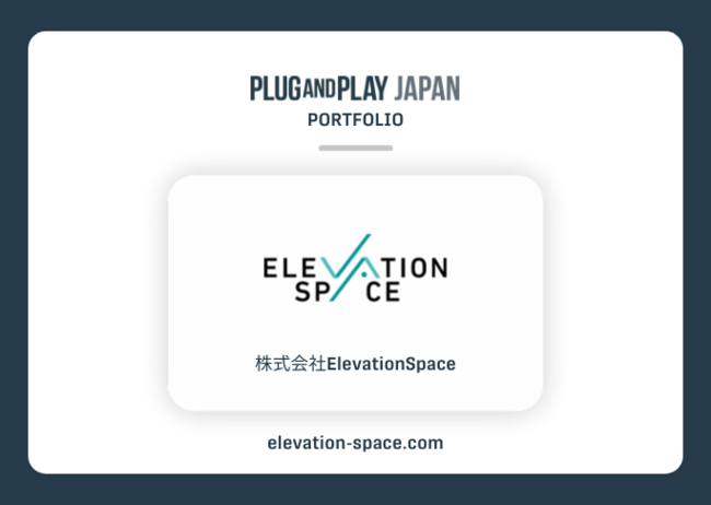 Plug and Play Japan株式会社Plug and Play Japan株式会社(本社:東京都渋谷区、代表取締役社長:ヴィンセント・フィリップ、以下「Plug and Play Japan」)は、株式会社ElevationSpace(宮城県仙台市、代表取締役/CEO:小林稜平、以下「ElevationSpace」)に出資することを決定いたしました。