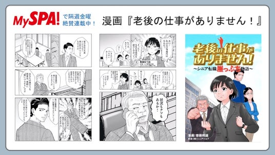 MySPA!連載の漫画『老後の仕事がありません!』は、シニアジョブが原案を担当し、実際にシニアジョブが支援したシニア転職をもとにして、これまで視覚的に描写されることのなかったシニア転職のリアルな世界を描いた作品となりました。