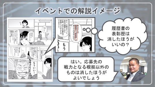イベントでは漫画の内容をもとにシニア転職のノウハウや実態について解説するのでわかりやすい