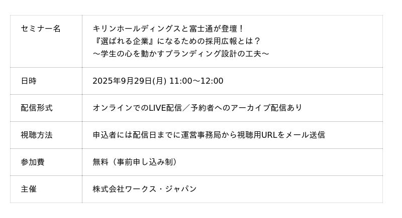 『キリンホールディングスと富士通が登壇!『選ばれる企業』になるための採用広報とは?~学生の心を動かすブランディング設計の工夫~
