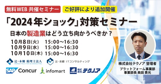 株式会社テクノア(本社:岐阜県岐阜市、代表取締役:山崎 耕治)は、ご好評により「2024年ショック」対策セミナーを追加開催いたします。