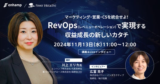 エンハンプ株式会社 代表取締役の川上エリカ氏をお招きし、9月25日に上梓された著書『RevOps(レベニューオペレーション)の教科書 部門間のデータ連携を図り収益を最大化する米国発の新常識』について、講演+Liveインタビュー形式で深堀りしていきます。