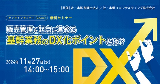 辻・本郷 税理士法人(本社:東京都新宿区、理事長:徳田孝司)は、辻・本郷 ITコンサルティング株式会社(本社:東京都渋谷区、代表取締役社長:黒仁田健)と2社共催で「販売管理を起点に進める基幹業務のDX化ポイントとは?」セミナーを開催いたします。昨今、企業にとってDX化の重要度が高まっており、インボイス対策を理由に、経理の業務負担が増えたと実感されている方も少なくないと思います。本セミナーでは、経理業務に関連する販売管理業務を起点に、業務負担の軽減とDXを効果的に進めるポイントを、分かりやすくカンタン解説します。