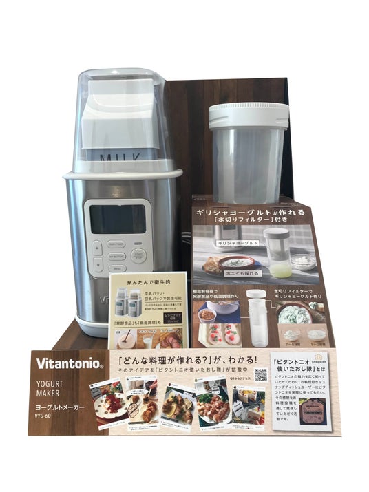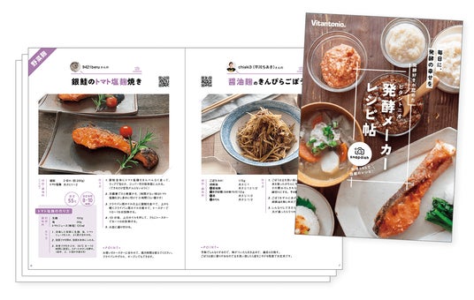 製品付属のレシピブック「発酵好きが認めた ビタントニオ発酵メーカーレシピ帖」には、スナップディッシュで発売前に同製品を生活に取り入れた「ビタントニオ使いたおし隊」8名がおすすめする12レシピを掲載。家庭で手軽に発酵食品づくりが楽しめる「発酵メーカー」で作った調味料と料理写真やレシピ、家庭で愛用する中での使用感などをコメントで伝え、「発酵メーカー」購入者が自身の暮らしの中で使いこなすイメージを伝えています。