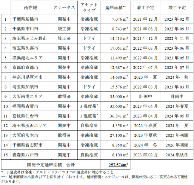 当社は、EC市場の拡大による物流施設需要の高まりや、2030年のフロン規制に向けた冷凍冷蔵倉庫の設備投資、冷凍食品の消費増加による冷凍冷蔵倉庫の需要拡大などを受け、物流施設開発をおこなっております。