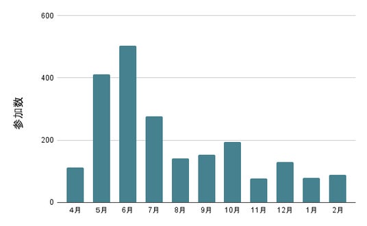 当社のOPEN COMPANY(R)の月別参加数は6月がピークに