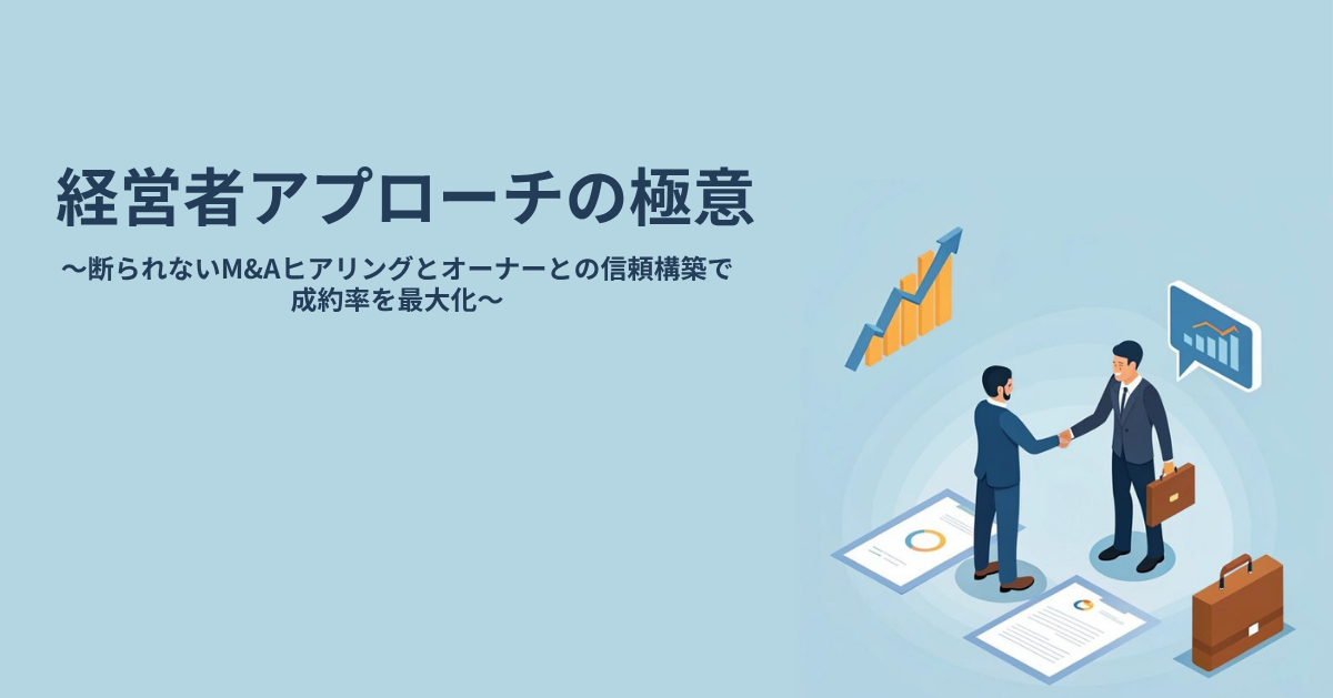 経営者の心理を捉え、信頼を築く“対話型アプローチ”を体系化。M&A営業の実践ノウハウを解説|https://forms.gle/GrrKC8L7cTe1CfHP8から無料で資料ダウンロードできます。