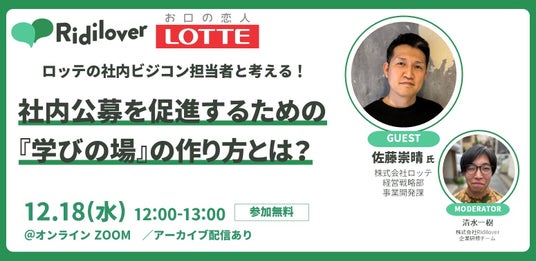 株式会社ロッテの社内ビジコン担当・佐藤様をゲストとしてお招きし、同社が運営する新規事業創出プラットフォーム「ミライアカデミア」の概要、RUSHの導入に至る経緯、実際の参加者から寄せられた声などを幅広くご紹介します。