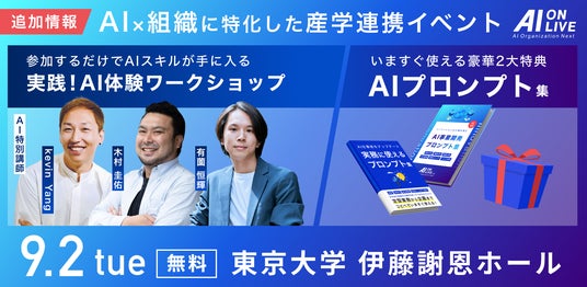 豪華ゲスト講演と実践ワークショップで、AIと組織の未来を掴むイベント。2025年9月2日(火)東京大学にて開催。