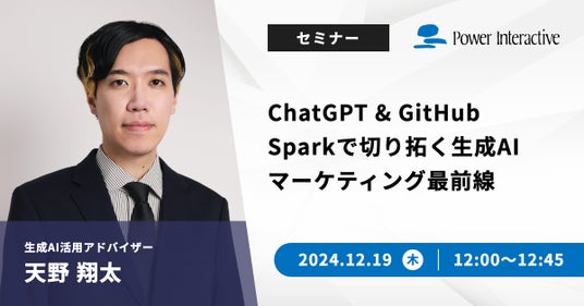 株式会社パワー・インタラクティブは、、無料ウェビナー『ChatGPT & GitHub Sparkで切り拓く生成AIマーケティング最前線』を、12月19日に開催します。