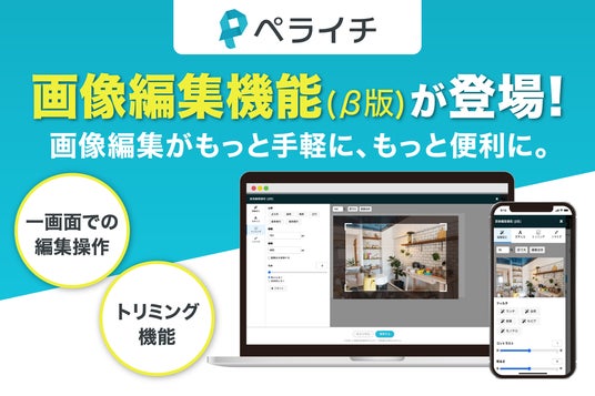 株式会社ペライチ(本社:東京都台東区 代表取締役CEO:安井 一浩 以下 ペライチ)は、ホームページ作成ツール『ペライチ』の編集画面において新たな「画像編集(β版)」機能を公開しました。この機能は、画像加工における利便性の向上を目指し、従来の編集機能に加えてトリミングをはじめとする新たな操作性を提供いたします。