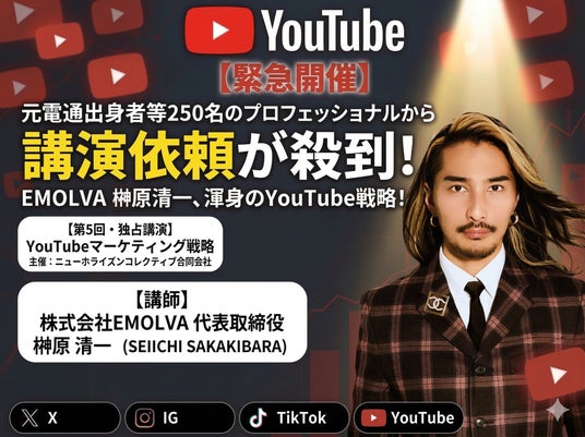 企業SNSマーケティングの総合コンサルティングを展開する株式会社EMOLVA(本社:東京都港区、代表取締役:榊󠄀原 清一)は、元電通社員を中心としたプロフェッショナル人材が集うニューホライズンコレクティブ合同会社(本社:東京都港区、代表:山口裕二、野澤友宏)にて、YouTubeの最新トレンドと具体的な活用方法に関するセミナーを開催いたしました。