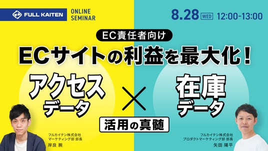 在庫分析クラウド『FULL KAITEN』を展開するフルカイテン株式会社(本社・大阪市福島区、代表取締役・瀬川直寛)は、ECサイトのアクセスデータと在庫データで売上粗利を上げる方法を解説するセミナーを開催します。