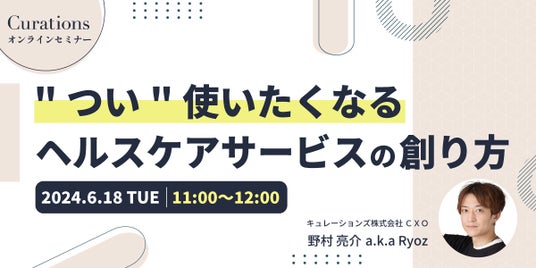 顧客企業のビジネス変革を成功に導くキュレーションズ株式会社(本社:東京都渋谷区、代表取締役社長:根本隆之、以下当社)は、『"つい"使いたくなるヘルスケアサービスの創り方』を2024年6月18日(火)に開催いたします