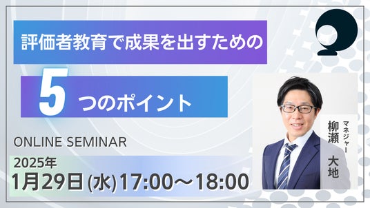 https://sele-vari.co.jp/ )は「評価者教育で成果を出すための5つのポイント」セミナーを2025年1月29日(水)17:00~18:00に開催することをお知らせいたします。