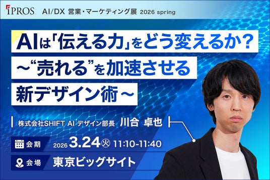 デザイン部長 川合 卓也 氏AIは業務効率化のツールにとどまらず、「伝え方」そのものを再定義し始めています。本セミナーでは、生成AIがコピー、構成、ビジュアル設計にどう影響し、“伝わる”を超えて“売れる”表現をどう生み出すのかを解説。営業・マーケの成果を加速させる、AI時代の新しいデザイン思考と実践術を具体事例とともにお伝えします。
