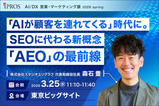 代表取締役社長 森石 豊 氏検索だけでなく、生成AIに“選ばれる”時代が始まっています。本セミナーでは、AEO・AIO・LLMOといった最新概念を整理しつつ、企業やブランドがAI検索・生成結果に表示され続けるための実践的対策を解説。コンテンツ設計、構造化、クリエイティブの観点から、今すぐ見直すべきポイントを事例とともにお伝えします。