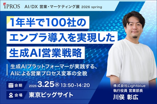 川俣 彰広 氏わずか1年半で100社のエンタープライズ導入を実現した生成AI営業の舞台裏とは。本セミナーでは、生成AIプラットフォーマーであるLightblueが自ら実践してきた、AIによる営業プロセス変革の全貌を解説します。リード創出から提案、受注までをどうAIで再設計したのか。成果に直結する生成AI営業戦略を具体的にお伝えします。