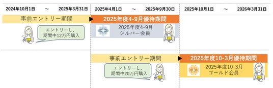2024年10月1日~2025年3月31日の間にエントリーすることで2025年度4~9月の優待対象となりますが、継続して2025年度10~3月の優待対象となるには、2025年4月1日~2025年9月30日の間に再エントリーが必要です。