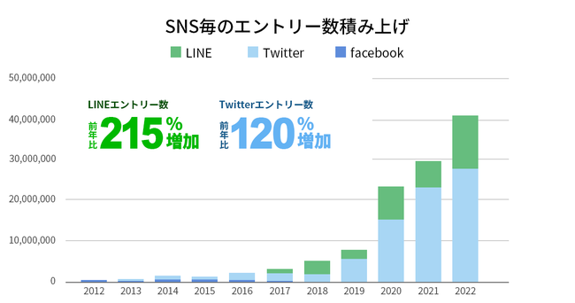 年間SNSキャンペーン実施数約5,000件、年間エントリー数4,100万人を達成!(2022年)